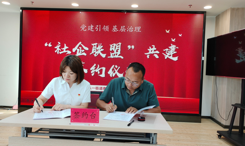 今年5月,在乌鲁木齐市沙依巴克区八一街道南昌路社区举行“社企联盟”共建签约仪式。受访单位供图