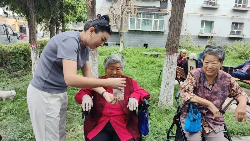 今年8月,社区工作人员帮助居民完成高龄认证。受访单位供图