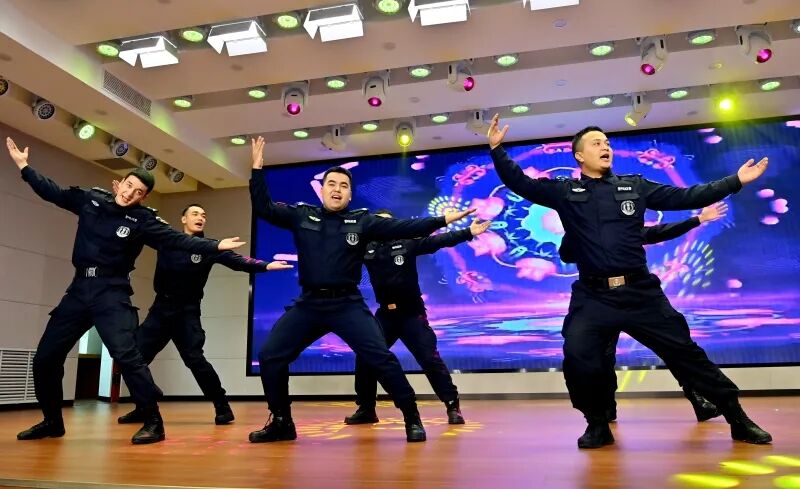 1月10日,民辅警表演舞蹈串烧《民族欢歌》。石榴云/新疆法治报记者单坤摄