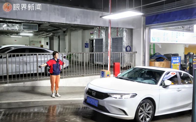 7月8日,水磨沟区绿地中心、会展吾悦广场周边新建的停车库,工作人员引导车辆通行。记者迪丽娜尔·加力肯摄