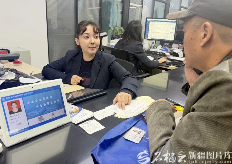 10月9日,乌鲁木齐市沙依巴克区政务服务大厅工作人员为市民办理相关业务。石榴云/新疆日报记者韩亮摄