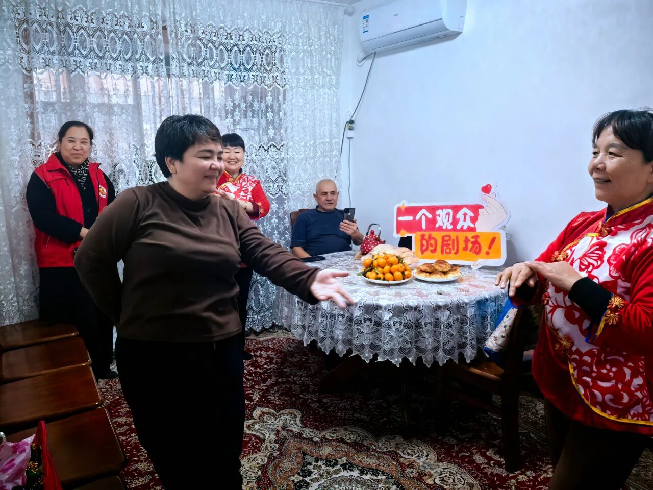 活动当天,志愿者来到居民家中,有的开始擦拭窗户,有的整理杂物,有的清扫角落。打扫完毕,原本有些凌乱的屋子变得明亮整洁。“今天我们为您准备了一场专属演出——‘一个观众的剧场’,现在开始!”社区工作人员小陈笑着说道。小小的客厅瞬间变成了温暖的剧场。志愿者小琳首先清唱了一首《茉莉花》,清澈的嗓音在房间里流淌;接着,两名志愿者跳起了一段简单却优美的舞蹈。