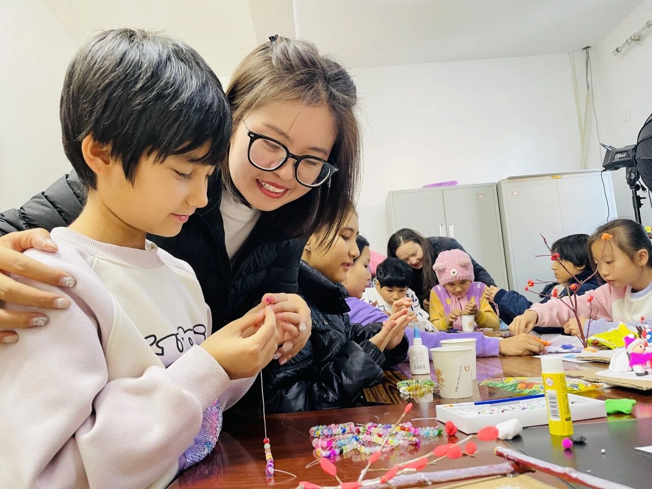 沙依巴克区扬子江路街道十月社区“两委”联合区卫健委驻社区工作队开展亲子手工活动,组织亲子家庭学习手工制品的创作技巧,共同制作成品,有效增进亲子情感交流,提升儿童的动手能力与协作精神。