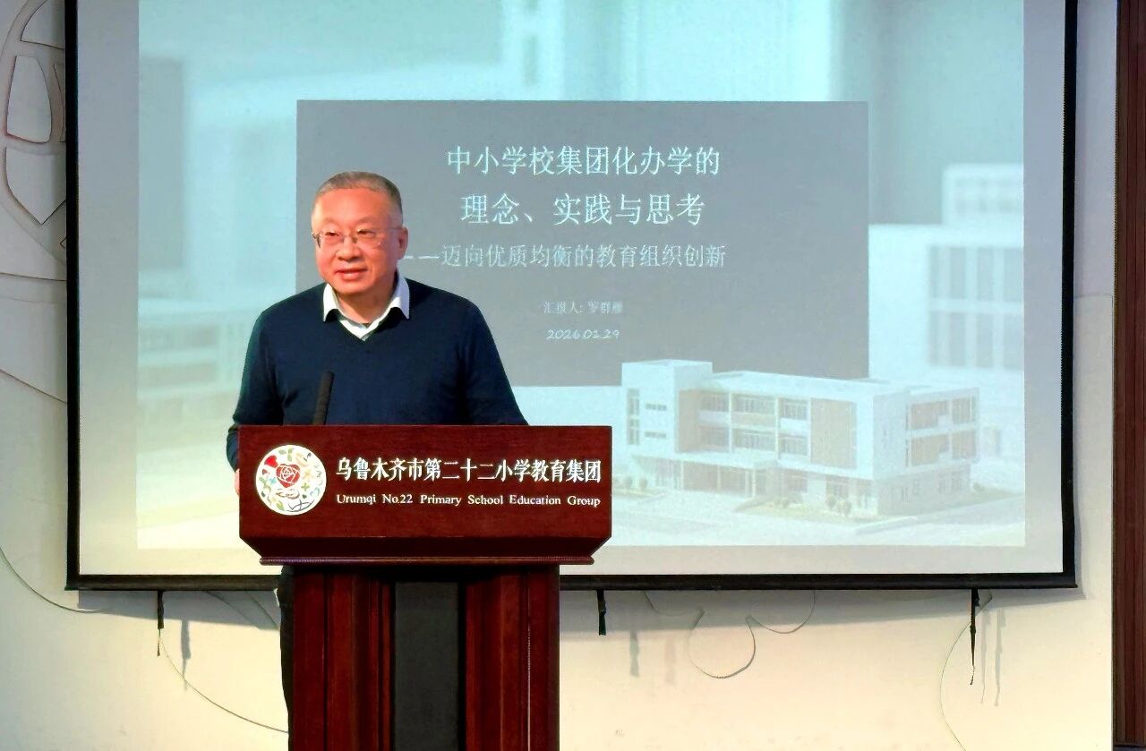 乌鲁木齐市第二十二小学教育集团总顾问李焰梅作专题分享,详细汇报了该校“名校+新校”集团化办学模式的顶层设计、推进举措与实践成效。从品牌输出到管理赋能,从课程共建到师资共培,展现了“名校带新校”模式如何实现优质教育资源的辐射延伸,为各集团学校提供了可借鉴的鲜活案例。