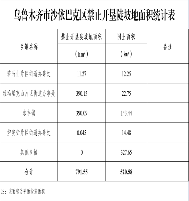 关于沙依巴克区禁止开垦陡坡地范围划定成果的公告