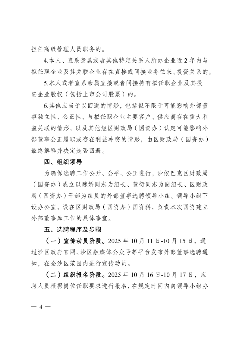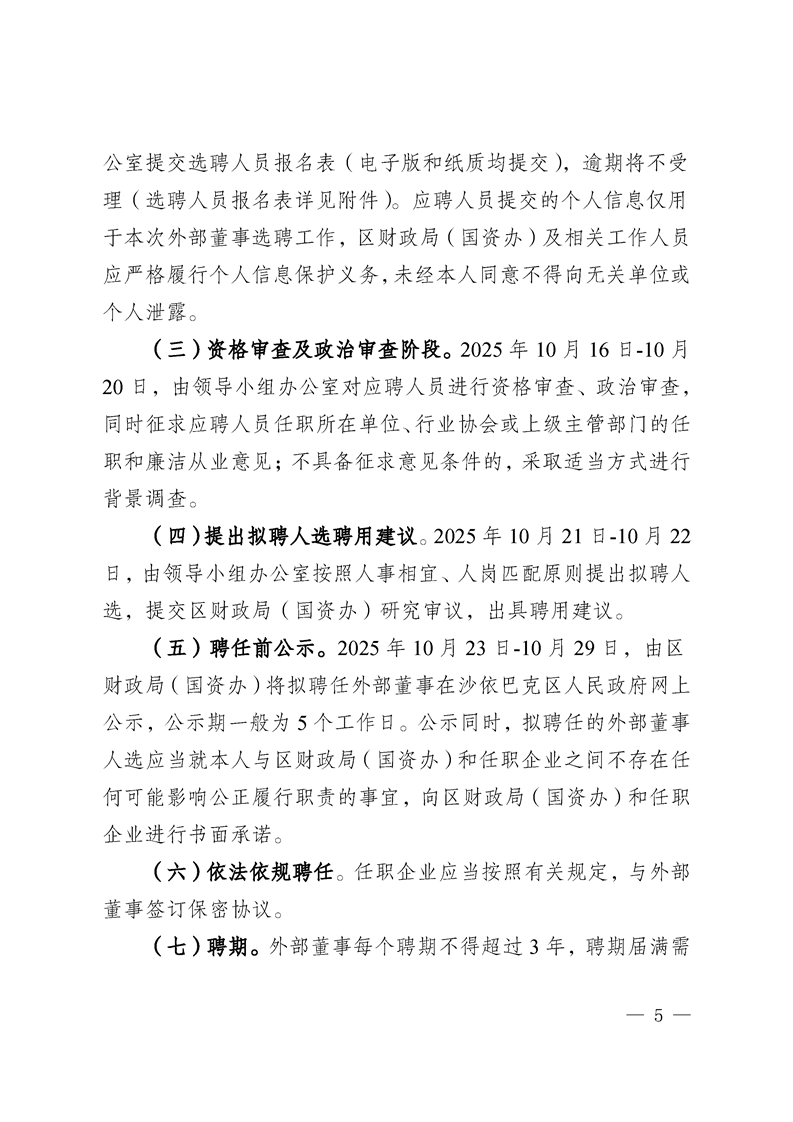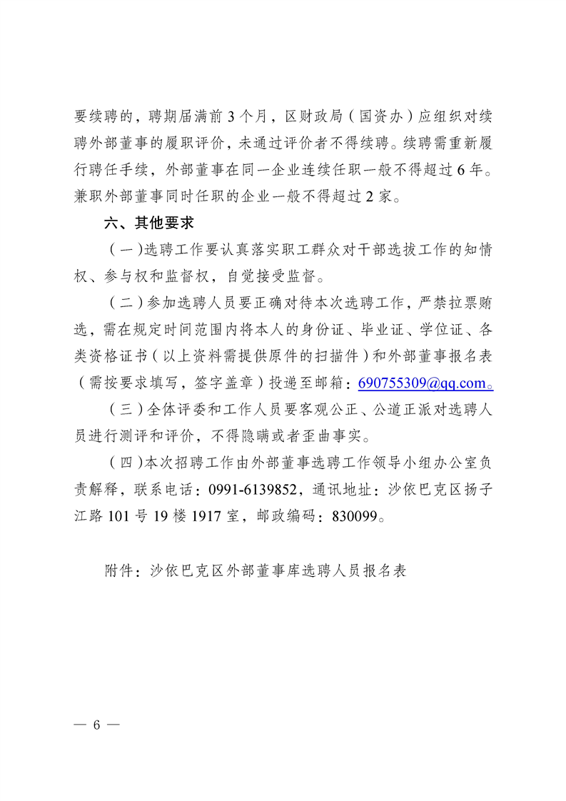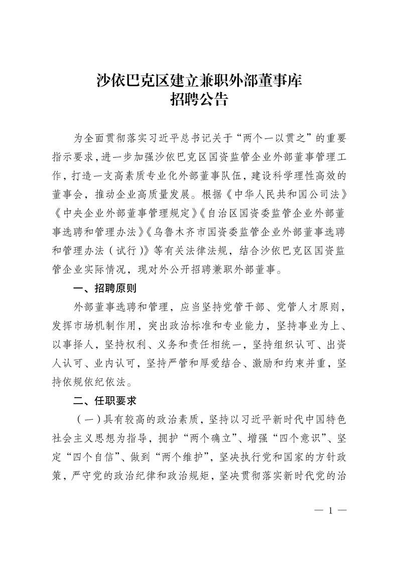 沙依巴克区财政局(国资办)建立兼职外部董事库招聘公告