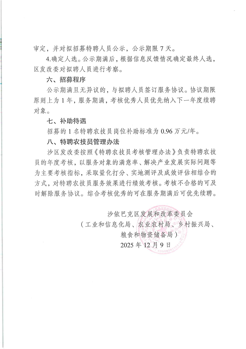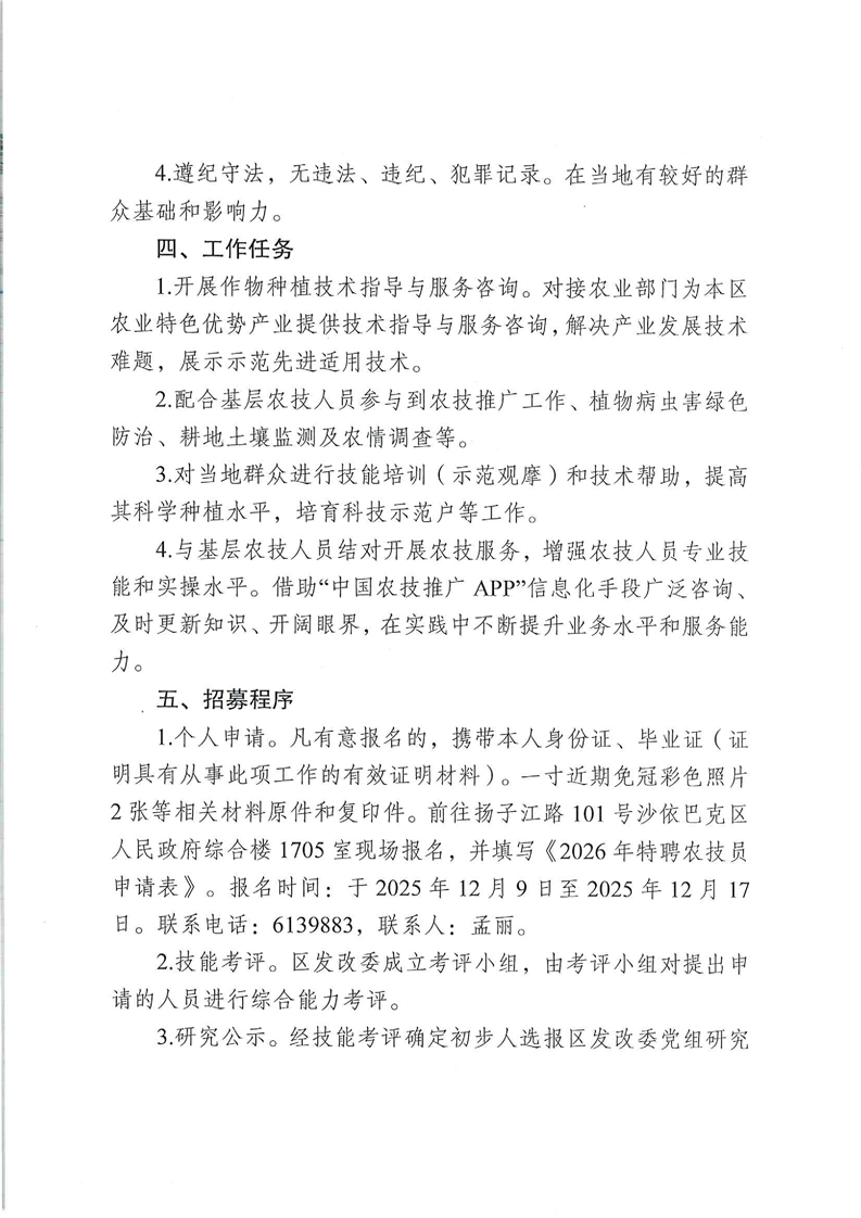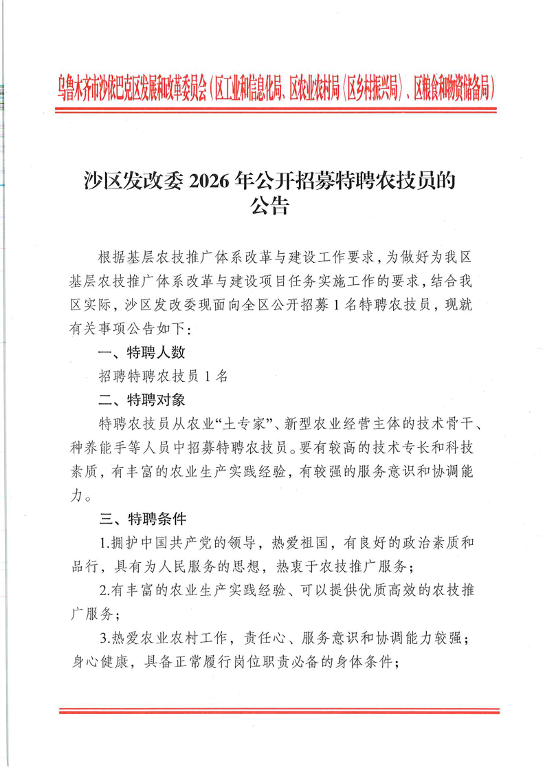 沙区发改委2026年公开招募特聘农技员的公告