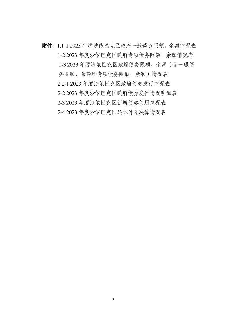 附件1 1-3 2023年度沙依巴克区政府债务限额、余额(含一般债务限额、余额和专项债务限额、余额)情况表.pdf
