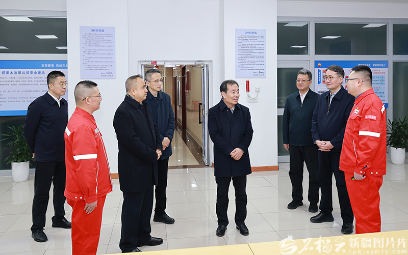 2月13日,自治区党委书记陈小江、自治区主席艾尔肯·吐尼亚孜在塔里木油田喀什油气储运中心,详细了解节日期间能源保障工作。石榴云/新疆日报记者崔志坚摄