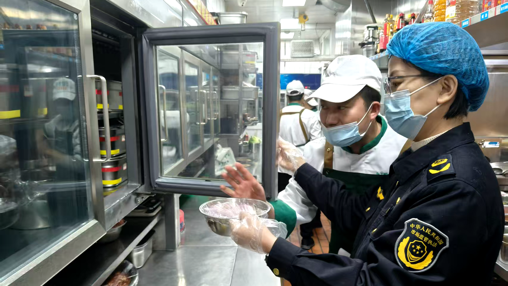 三严查后厨操作:深入加工区域,检查食品贮存、生熟分开、烧熟煮透、餐具消毒、食品留样等关键环节,规范操作流程,严防交叉污染。