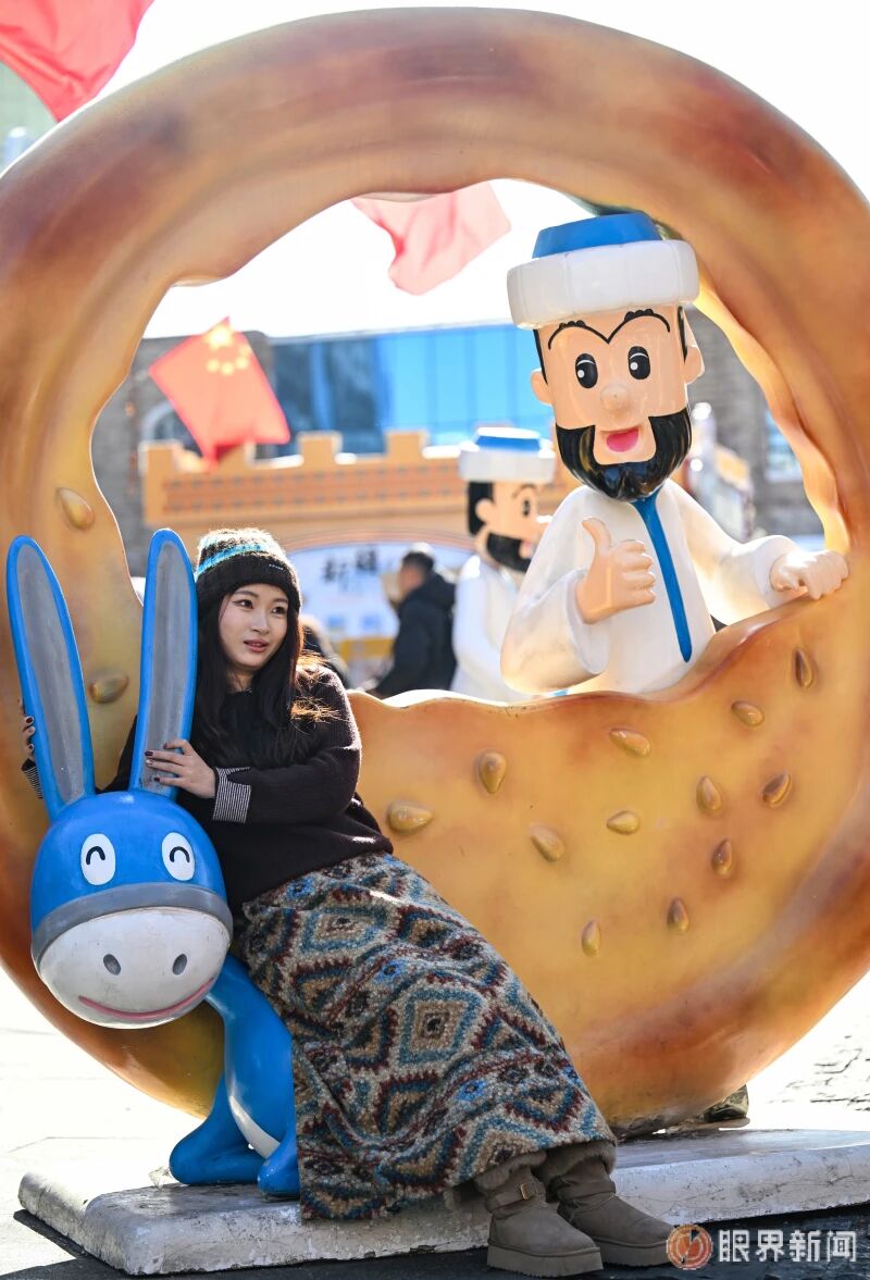2月22日,大巴扎步行街,一名来自上海的游客在打卡拍照。记者米热扎提·木塔力甫摄