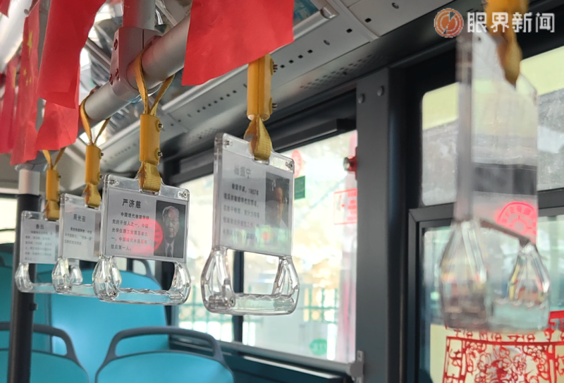 “袁隆平、苏步青、孙家栋、杨振宁、屠呦呦……”一张张卡片上,图文并茂地讲述着国家功勋人物的感人事迹。乘客抬手拉住手环的瞬间,便能与这些闪亮的名字相遇。在碎片化的乘车时间里,功勋模范“忠诚、执着、朴实”的崇高品格,就这样悄然浸润心田。