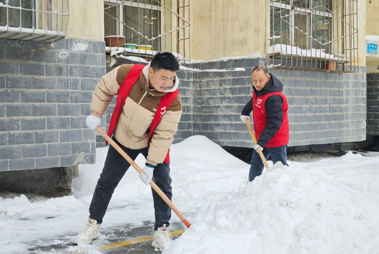 清雪现场,社区干部、青年团员、志愿者组成扫雪攻坚队伍,重点清理小区主干道、单元门口、无障碍坡道等关键区域。沿街商户、小微企业主动清理门前积雪。辖区居民自发加入队伍,邻里结伴、分工协作,在铲雪除冰中凝聚力量,现场一派热火朝天的景象。