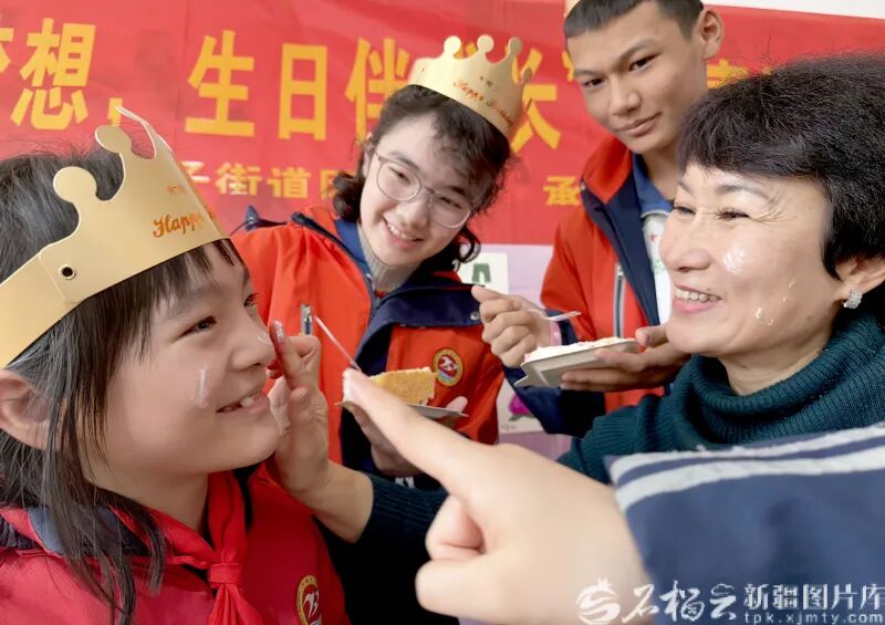 3月17日,爱心妈妈与孩子们互抹生日蛋糕,送上祝福。石榴云/新疆日报记者韩亮摄