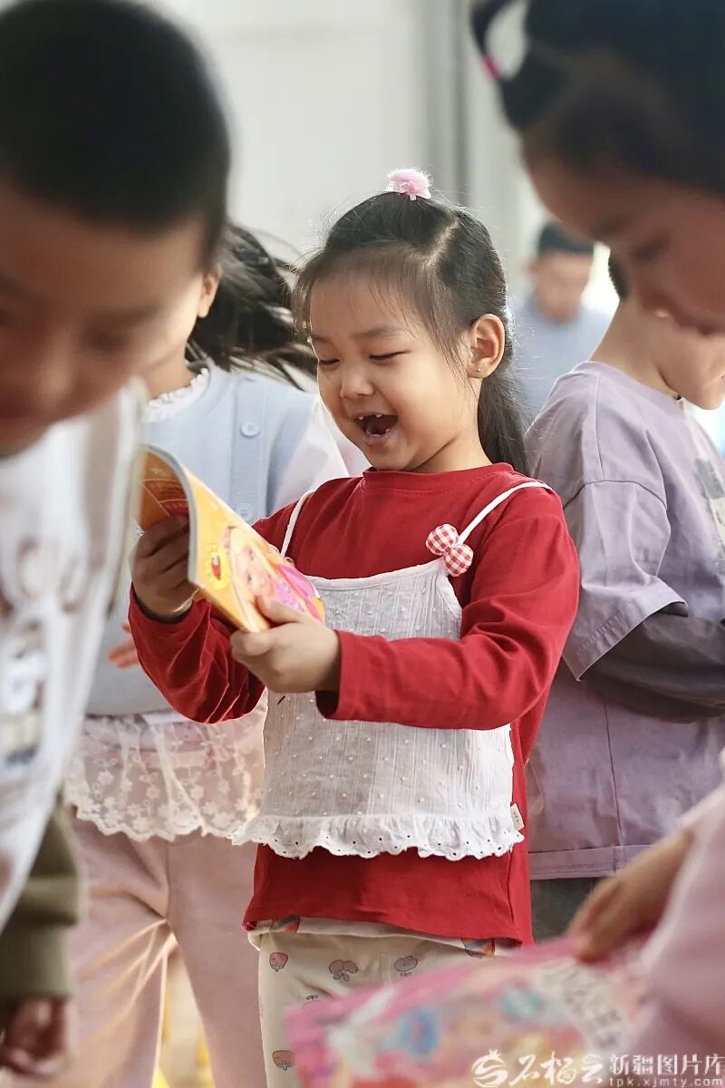 3月17日,孩子们接过崭新的图书,迫不及待地翻看起来。石榴云/新疆日报记者李瑞摄