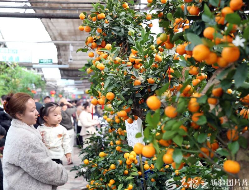 3月9日,在乌鲁木齐市明珠花卉市场,市民在选购盆栽金桔树。