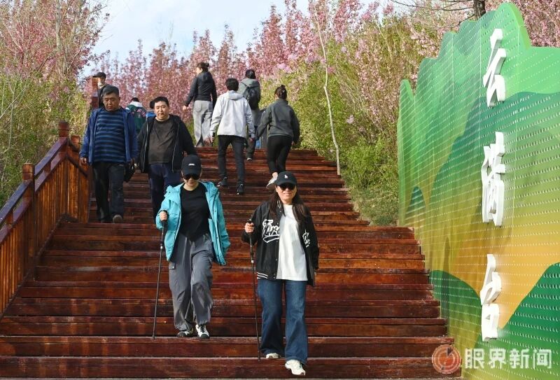 4月18日,在乌鲁木齐市沙依巴克区雅玛里克山森林公园云满台,市民与游客漫步在繁花簇拥的步道间,徒步健身、登高望远,在春日花海中畅享惬意时光。记者陈岩摄