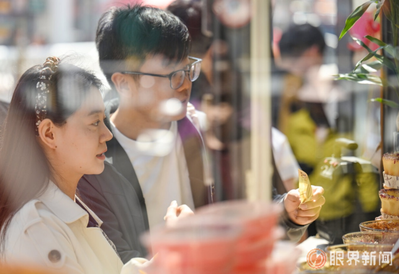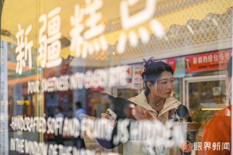 4月4日,在大巴扎景区,游客购买特色糕点。记者米热扎提·木塔力甫摄