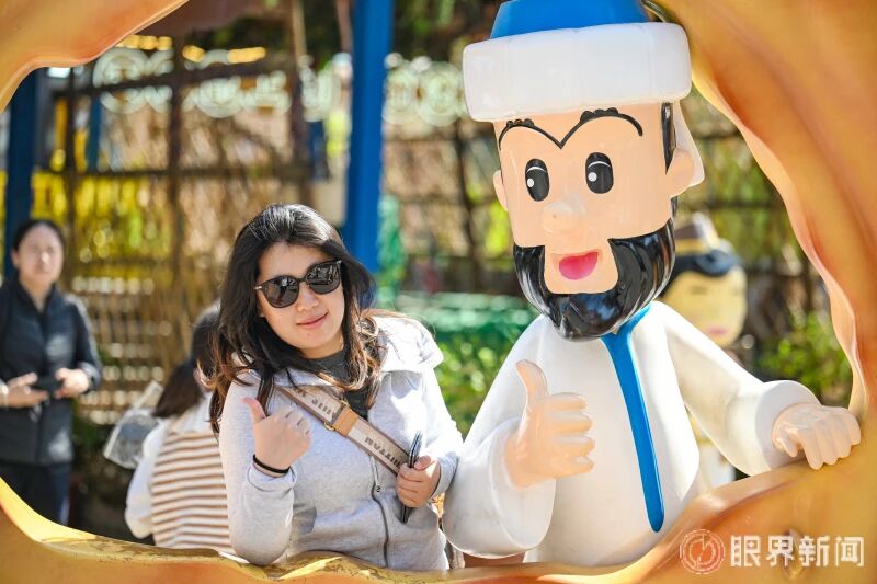 4月4日,在大巴扎景区,来自四川的游客打卡拍照。记者米热扎提·木塔力甫摄