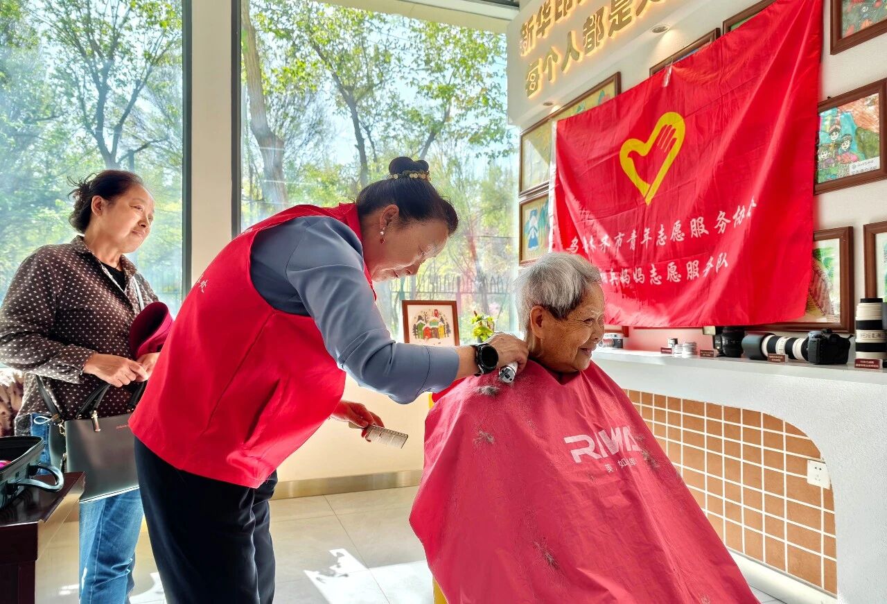 在爱心义剪区,两位志愿者理发师为居民提供免费理发服务,他们耐心询问居民需求,动作娴熟细致。“下楼就能免费理发,太方便了。”92岁的张奶奶赞不绝口。理发师一边修剪,一边陪她拉家常,很快便修剪出干净利落的发型。一上午的时间里,义剪区共服务了12名60岁以上的老年人。