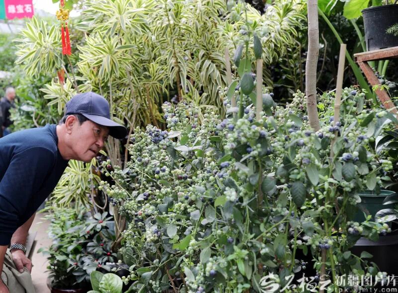 4月22日,在明珠花卉市场内,市民正在选购蓝莓苗。