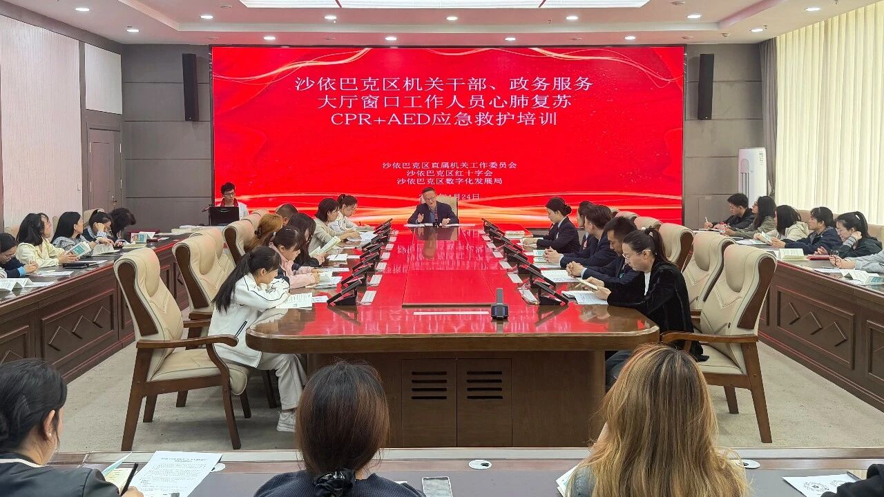 4月24日,一场别开生面的“生命必修课”在沙依巴克区政务服务中心火热开讲。这场由区直属机关工委、区红十字会、区数字化发展局联合举办的心肺复苏(CPR)与自动体外除颤器(AED)应急救护培训,吸引全区各单位的机关干部及政务服务大厅窗口工作人员约50余人参加。