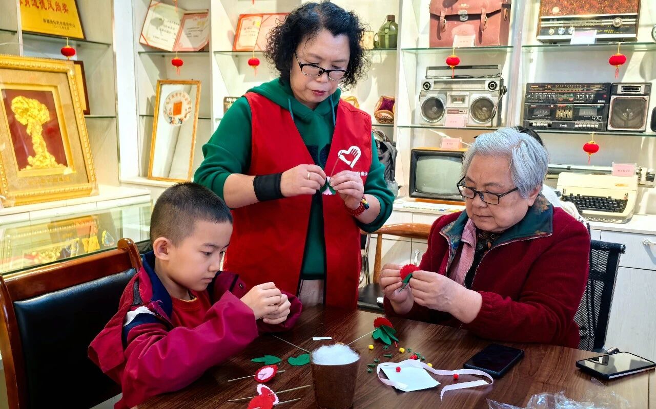 友好北路街道师大社区新时代文明实践站里,居民们围坐一起,用巧手制作布艺盆栽,以低碳环保的方式缅怀先人、寄托思念,在手工创作中共话清明民俗。