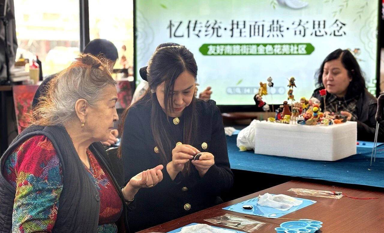 友好南路街道金色花苑社区新时代文明实践站则以非遗面塑为载体。在非遗老师指导下,各族居民揉、搓、捏、塑,将彩泥化作一只只灵动的面燕。大家用老手艺寄托对先烈的追思,也表达对当下安稳生活的感恩。思念有了形状,缅怀有了温度,非遗文化也在这份安静中活了起来。