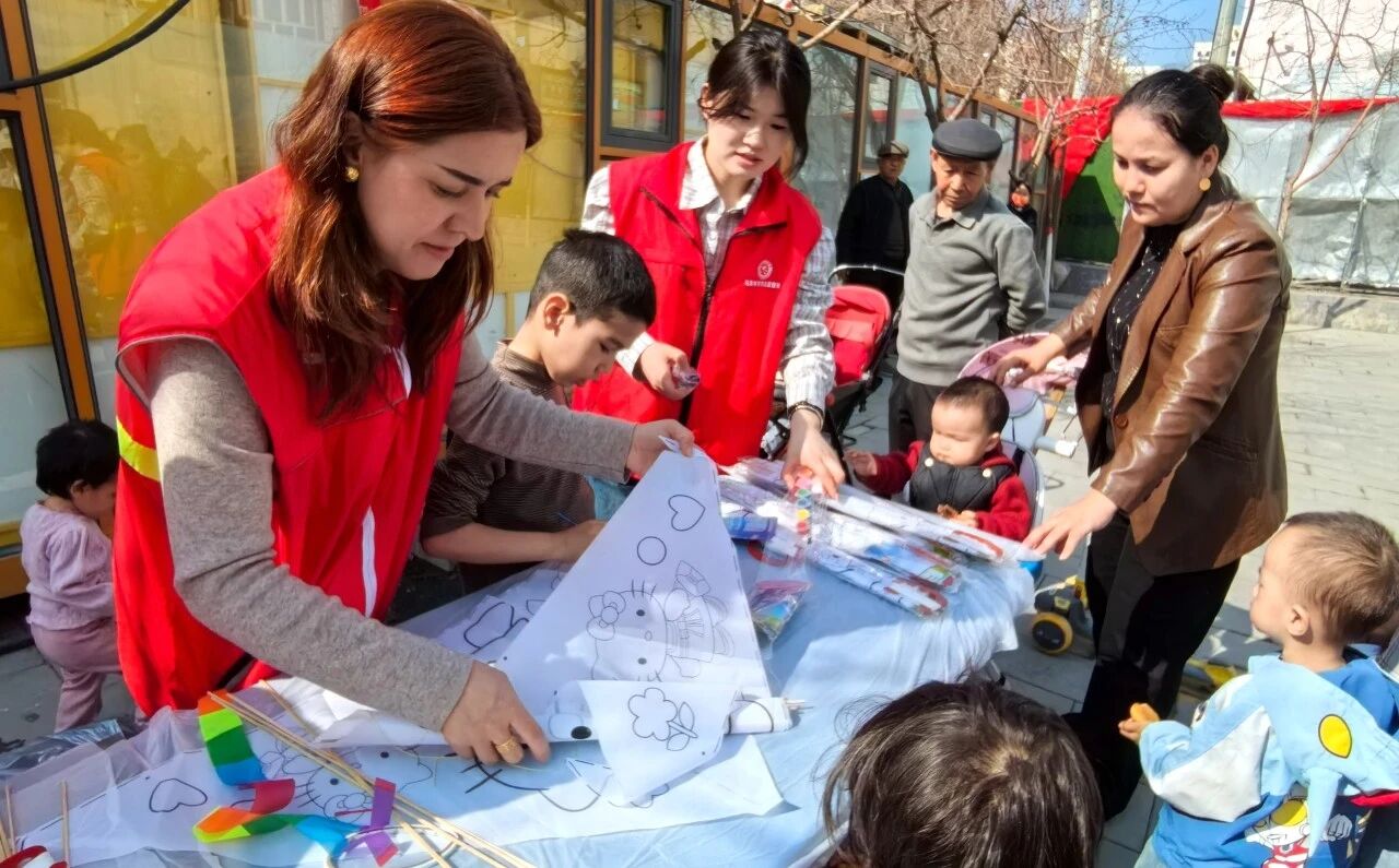 和田街街道和田街社区新时代文明实践站在和田二街小游园举办“丝路寒食·共此春风”清明民俗文化市集。青团手作坊、春日祈福站、风筝绘画区……各族居民与游客围坐一起,制作青团、写下心愿、手绘风筝,在动手体验中感悟文化内涵,拉近邻里距离。