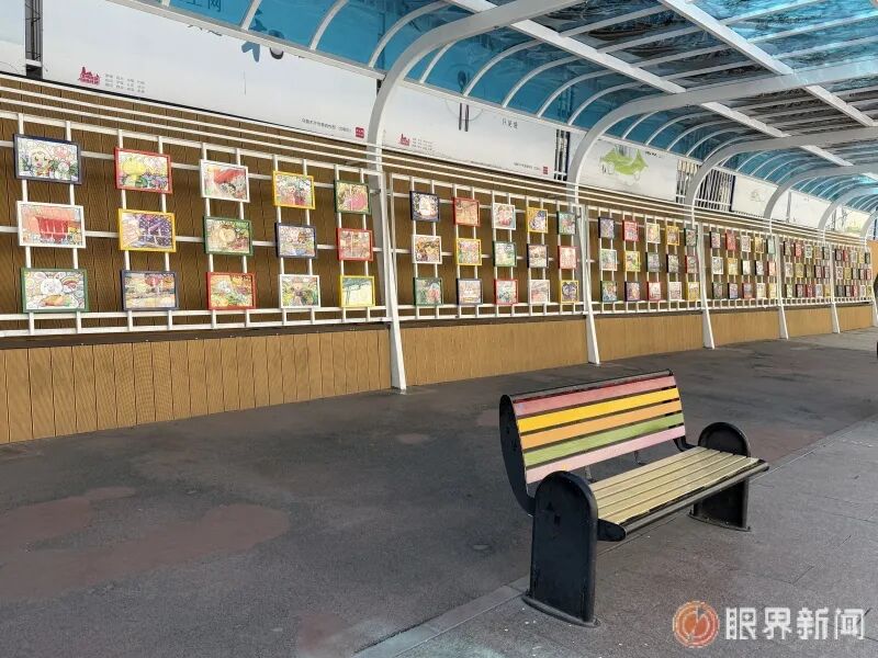 在市第四十二小学操场上,彩虹长廊挂满了学生的作品。记者张梦婷摄