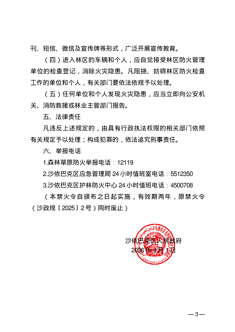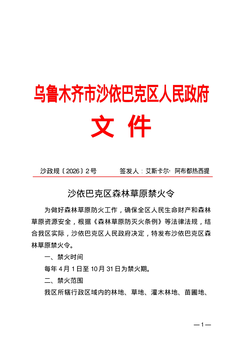 沙依巴克区森林草原禁火令